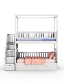 Выбор мебели для детской комнаты — ответственное задание. Нужно учесть не только эстетическую сторону, но и практичность, безопасность и функциональность. Двухъярусная кровать Лейла с надстройкой и лестницей-комодом — это идеальное решение, которое сочетает в себе все необходимые качества.